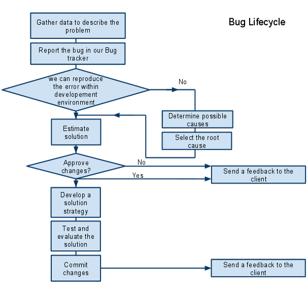 Then your flowchart is perfect to me until “approve changes” where we must not forget to send back to the client when the bug resolution is scheduled if the change is approved.