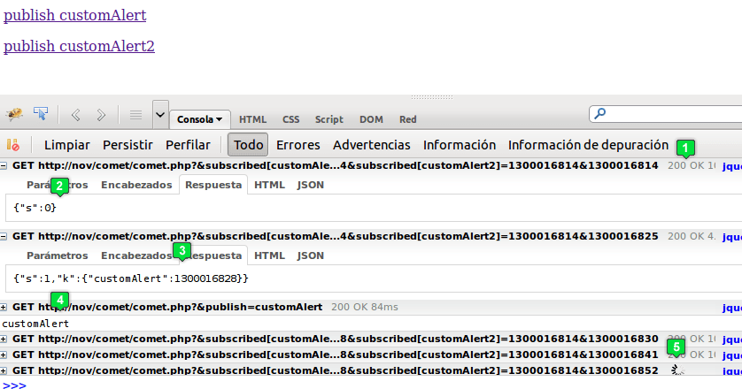 Because of that I prefer to use comet (at least now). It’s not as good as websockets but pretty straightforward ant it works (even on IE). Now I’m going to explain a little script that I’ve got to perform a comet communications, made with PHP. Probably it’s not a good idea to use it in a high traffic site, but it works like a charm in a small intranet. If you want to use comet in a high traffic site maybe you need have a look to Tornado, twisted, node.js or other comet dedicated servers.