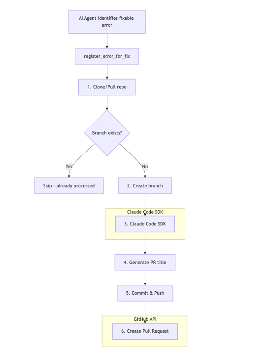 Each fix gets its own branch with a timestamp. If the branch already exists remotely, we skip it to avoid duplicate PRs: